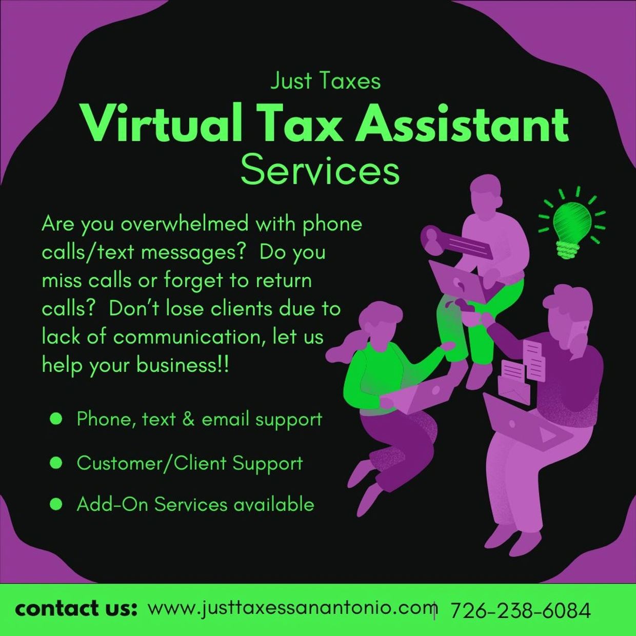 At Just Taxes San Antonio, LLC, we provide personalized services catered to your business. Our team of experienced tax professionals is dedicated to helping you navigate the complexities and challenges of running a tax business. We offer a range of services, including answering services, scheduling, customer service and tax support for your team. With our help, you can focus on growing your clientele without the stress of worrying about call volume. Call us today or complete the contact form and we will be in touch very soon!